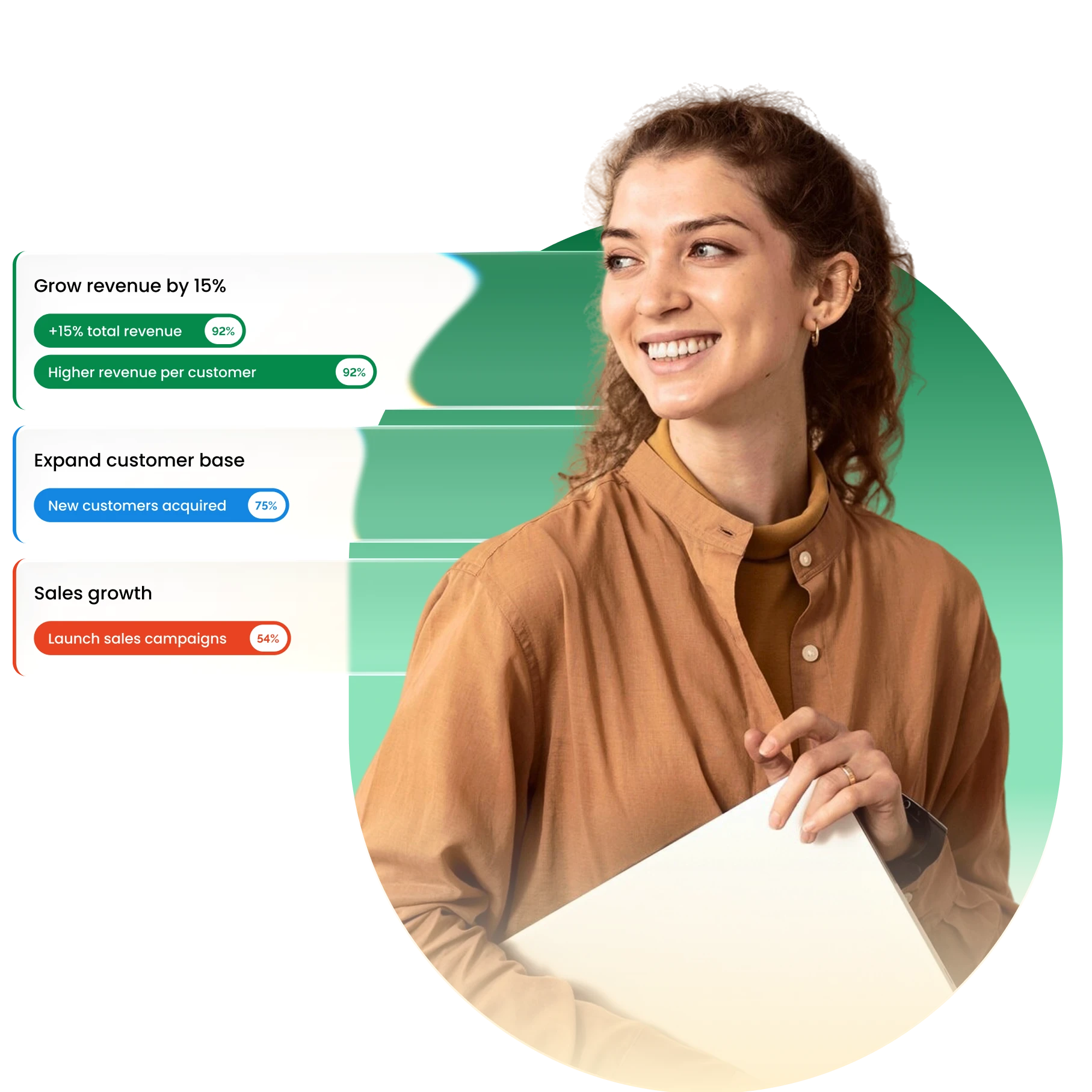From the C-suite to the frontline, align every goal with business objectives. Flexible support for KPIs, OKRs, or any framework helps you define success—and achieve it daily.