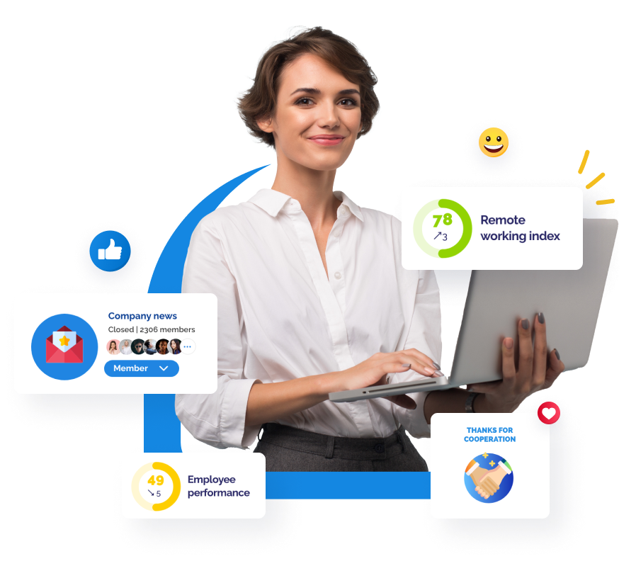 Bring employees and leadership together with two-way conversation. Flatten the organization structure and share vision, strategy, make announcements, invite people to live Q&As or engage with posts of employees.